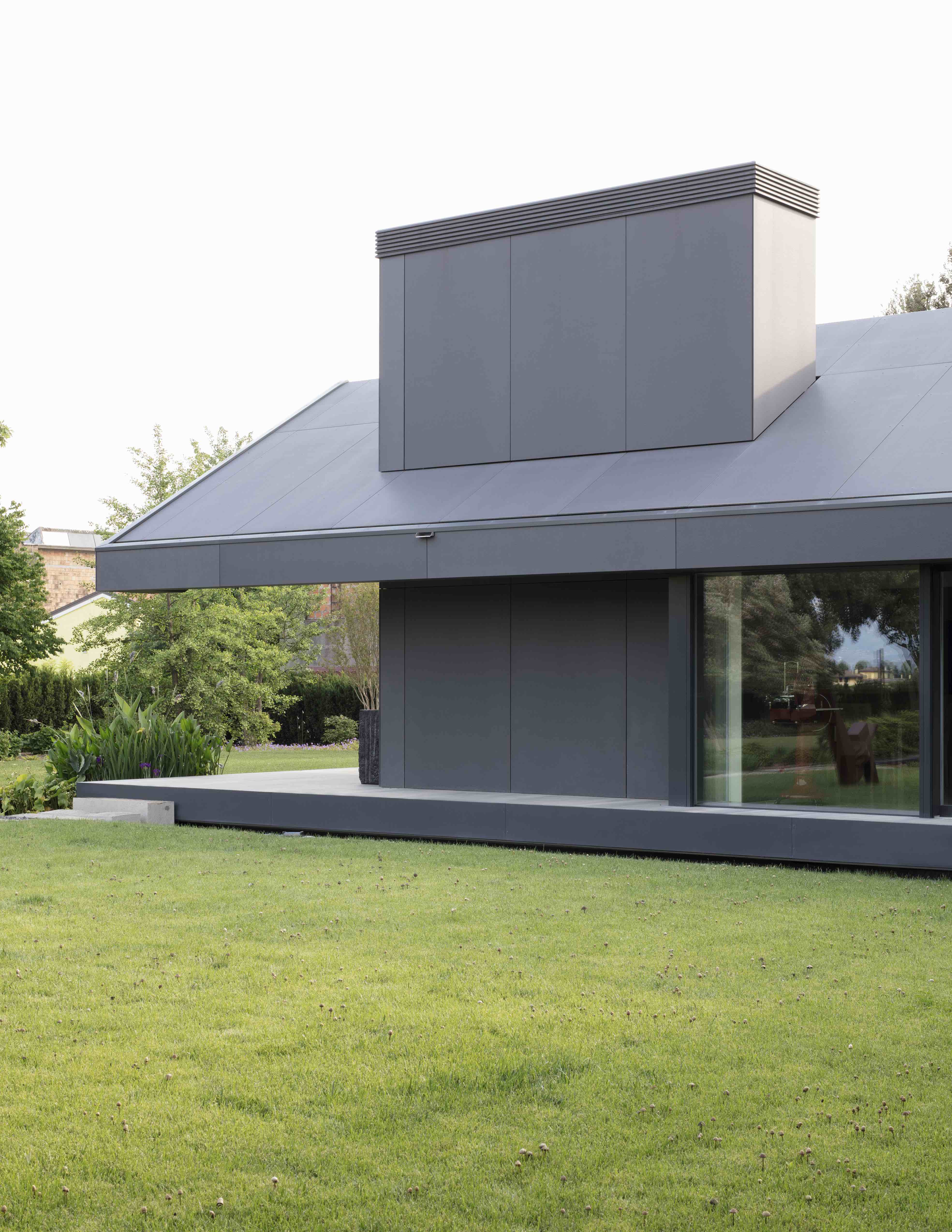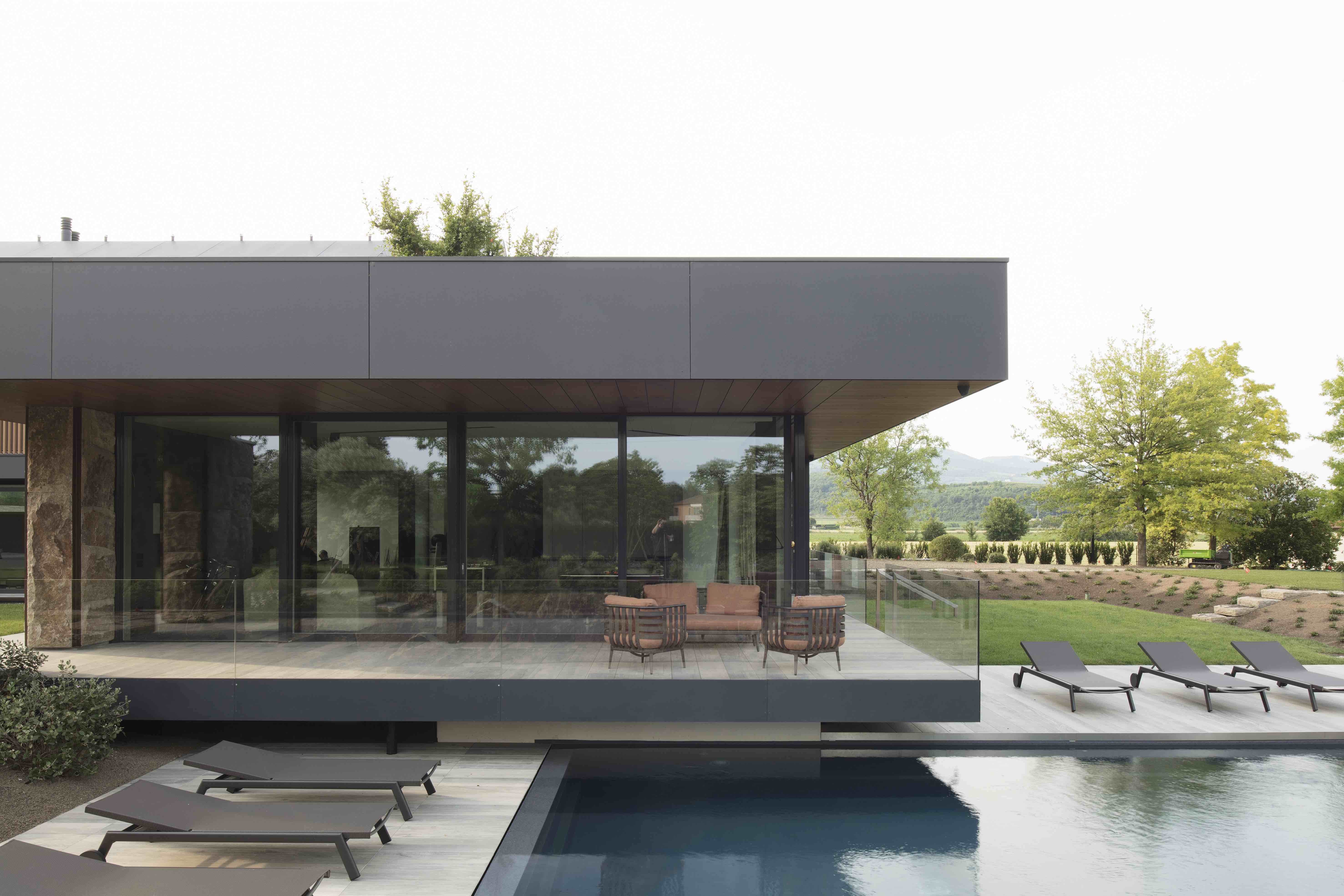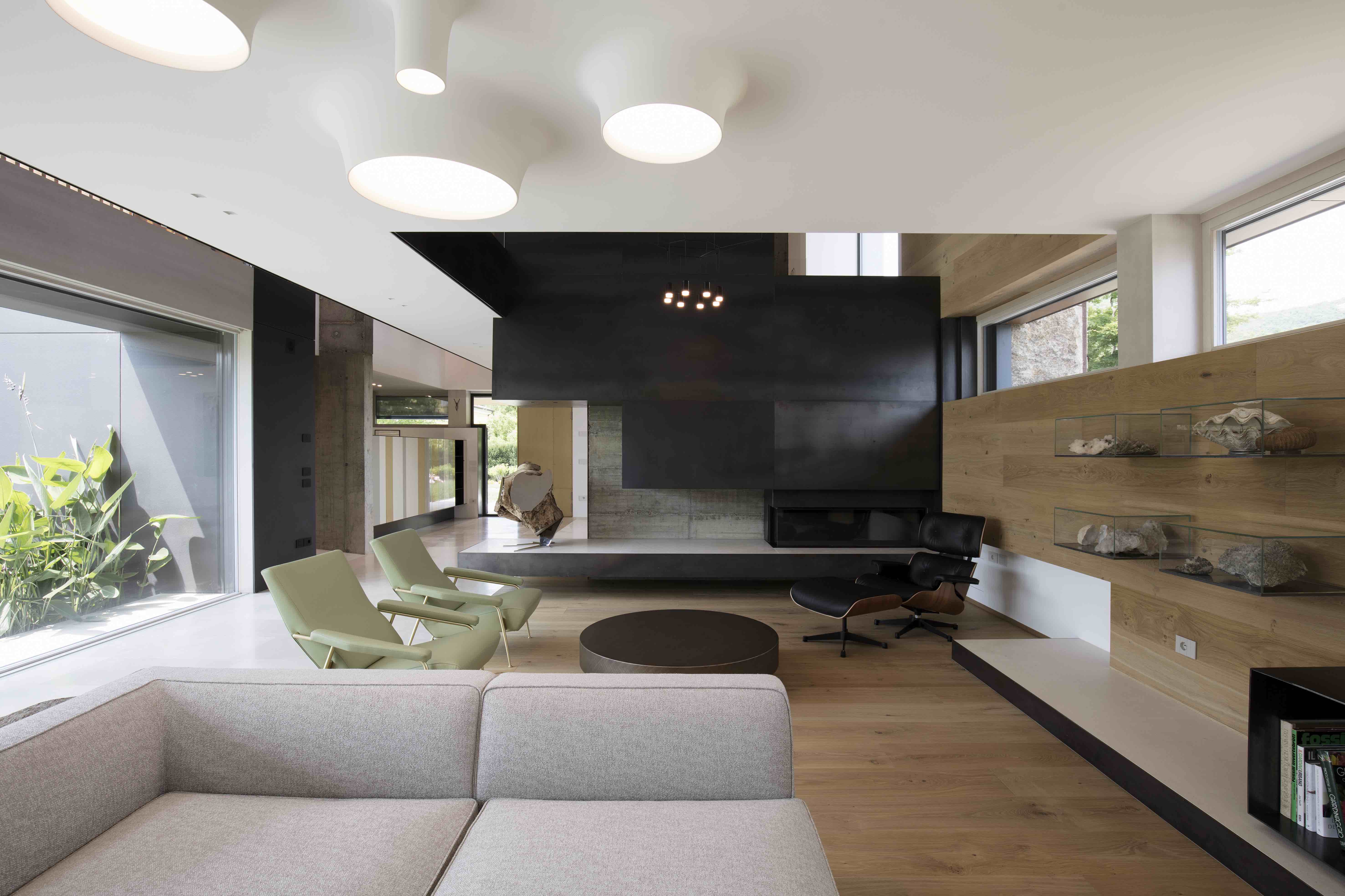 이 프로젝트에는 그의 이러한 특징이 고스란히 담겨있는데, 열 펌프에 전력을 공급하기 위한 태양열 패널이 포함된 30° 각도의 지붕처럼 에너지 관점에서 자급자족이 가능하도록 마감재의 선택과 기술을 집대성했습니다. 또한 지열 에너지를 활용해 개별 영역을 관리하고, 에너지 절약, 웰빙 및 편안함을 제공하는 내부 홈 자동화 시스템을 더해 배출 제로 인증 주택으로 만들었습니다.