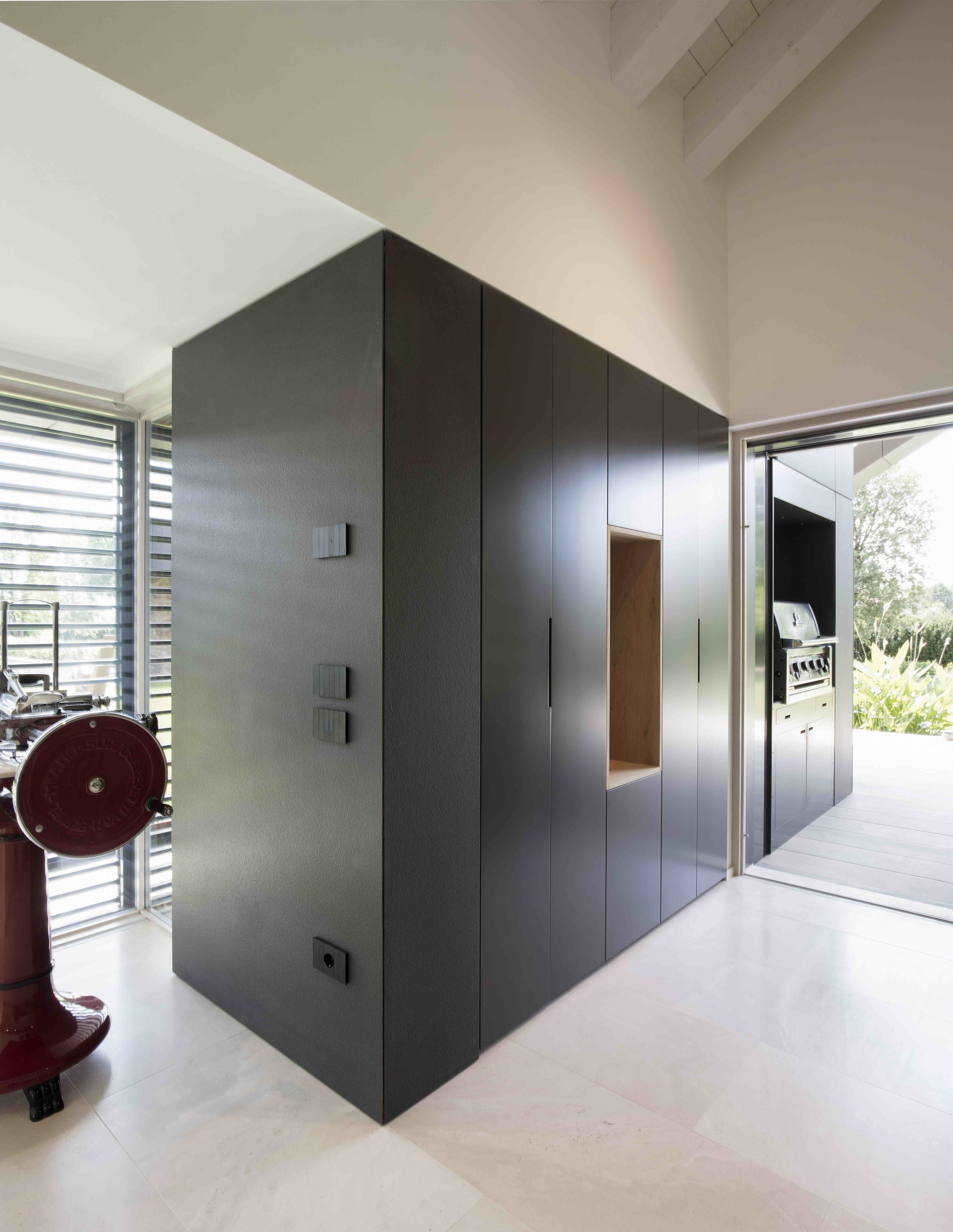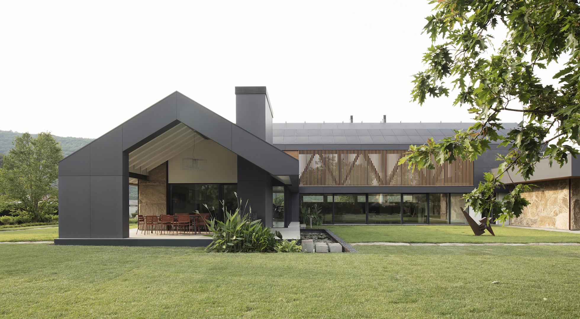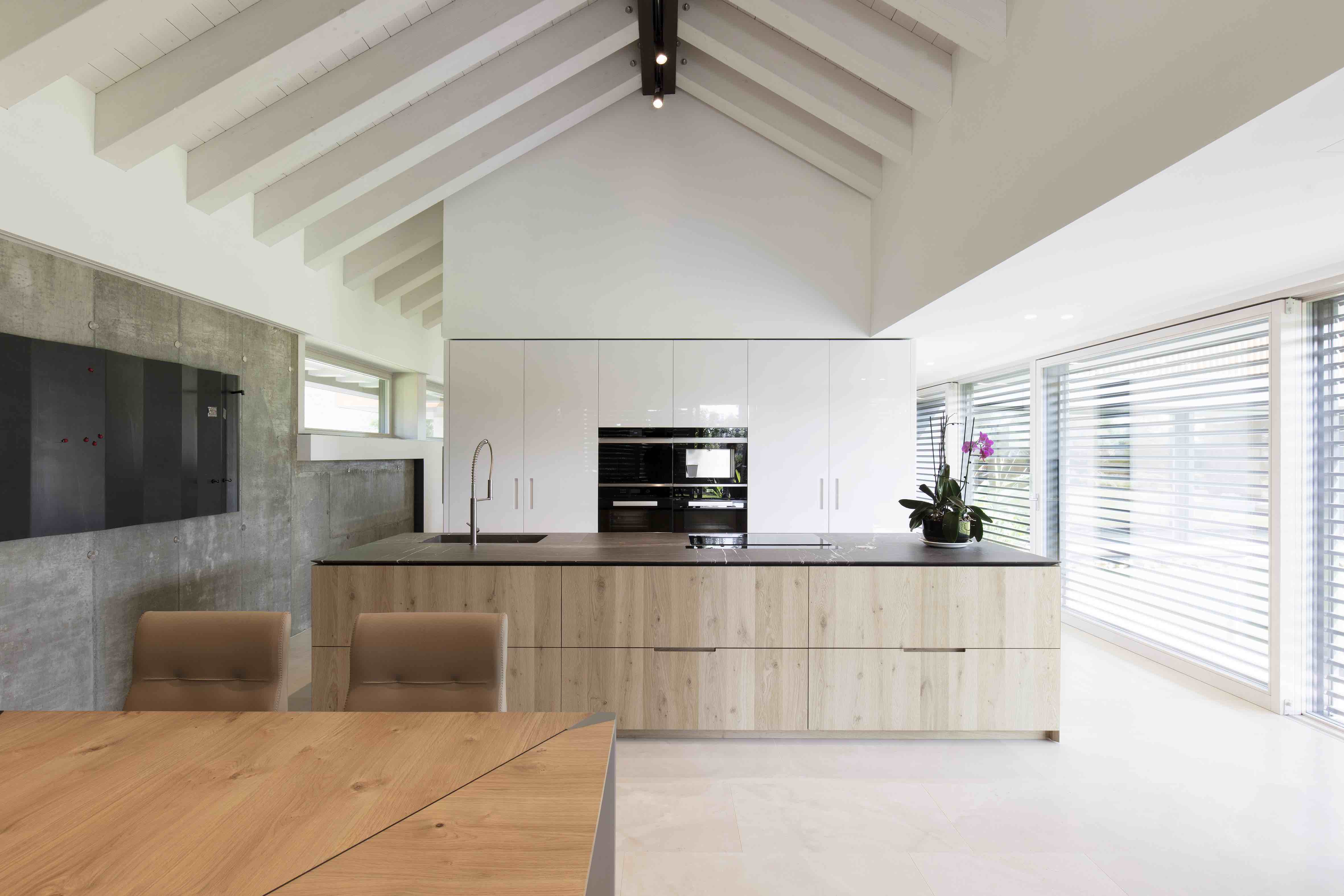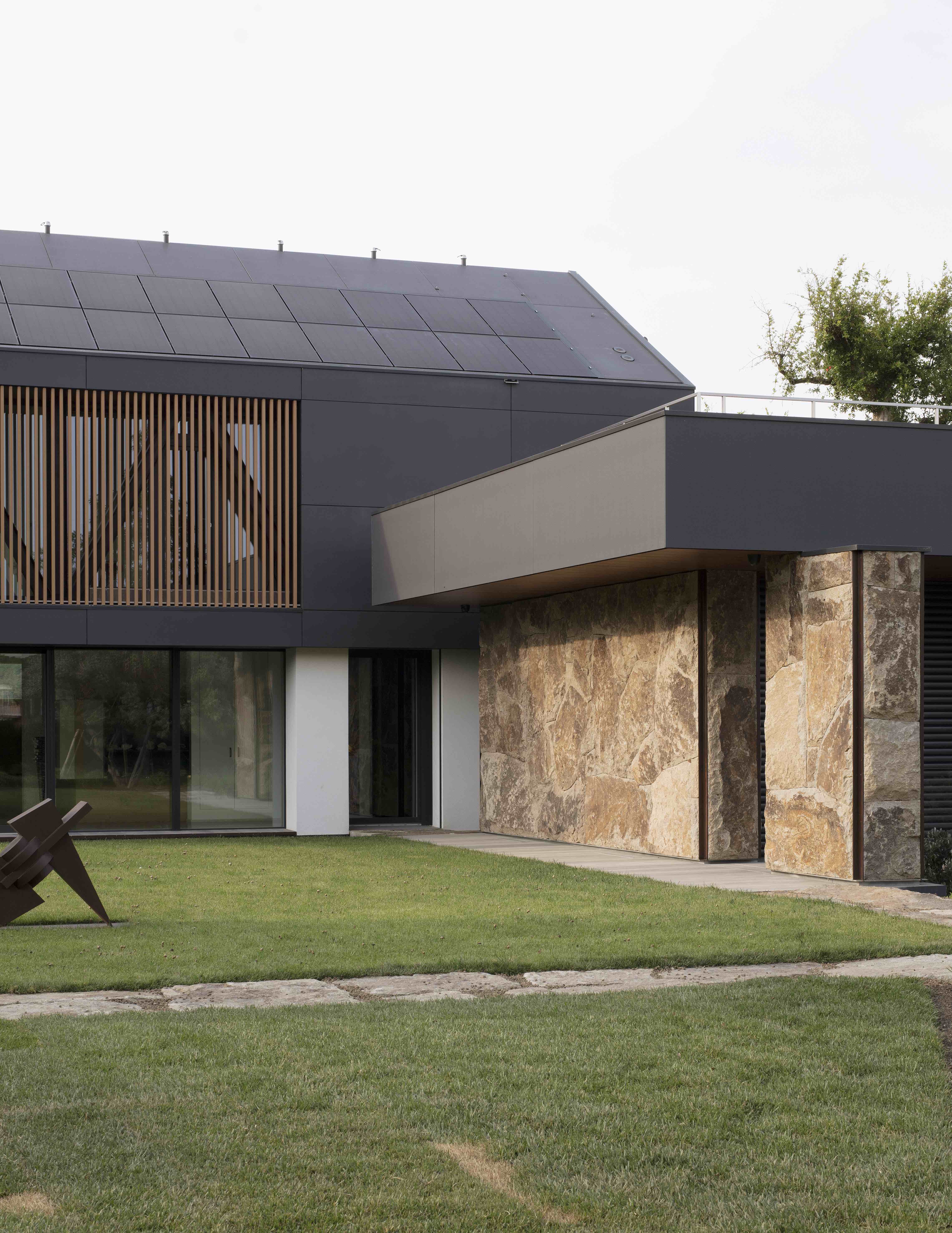 이 프로젝트에는 그의 이러한 특징이 고스란히 담겨있는데, 열 펌프에 전력을 공급하기 위한 태양열 패널이 포함된 30° 각도의 지붕처럼 에너지 관점에서 자급자족이 가능하도록 마감재의 선택과 기술을 집대성했습니다. 또한 지열 에너지를 활용해 개별 영역을 관리하고, 에너지 절약, 웰빙 및 편안함을 제공하는 내부 홈 자동화 시스템을 더해 배출 제로 인증 주택으로 만들었습니다.