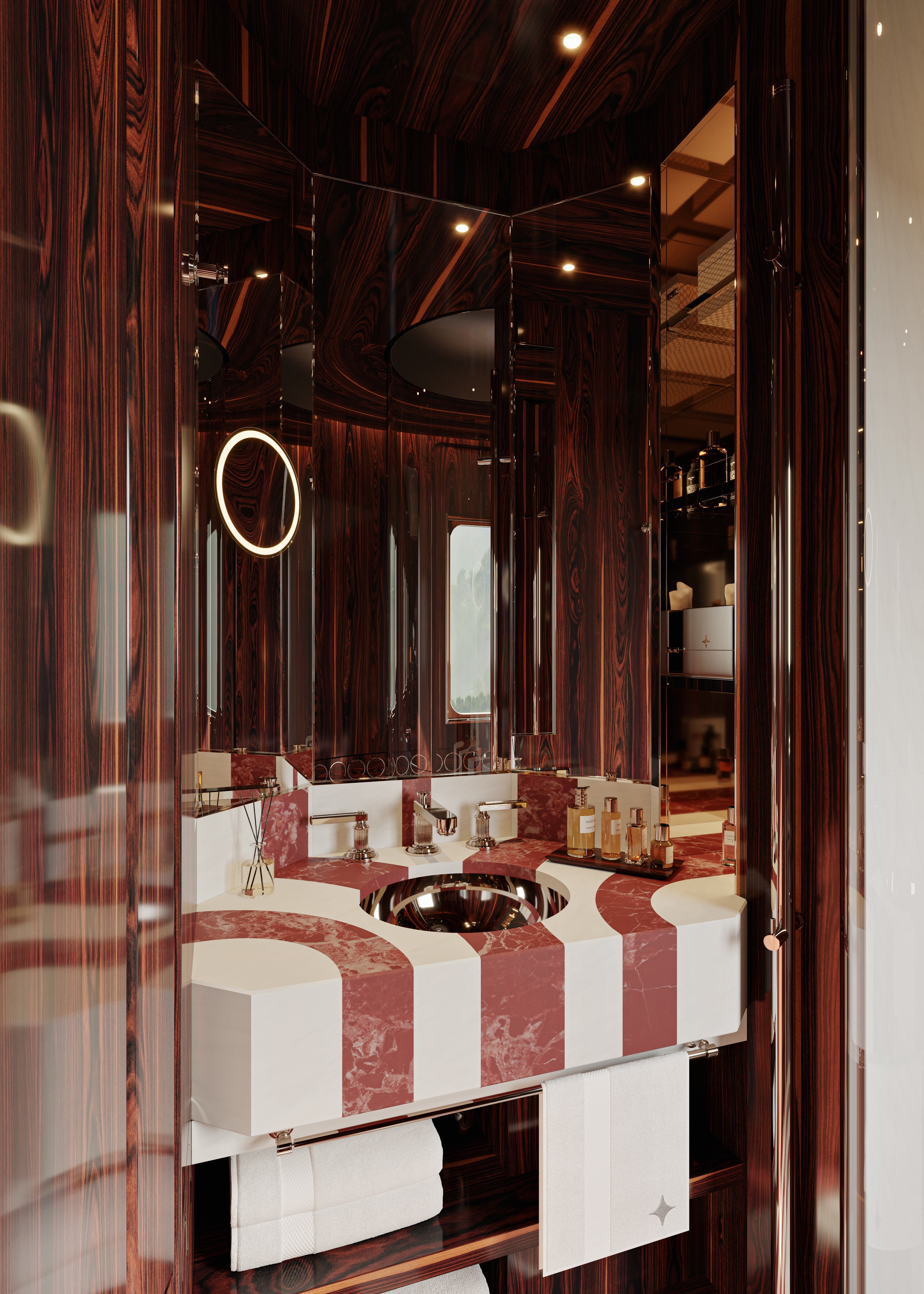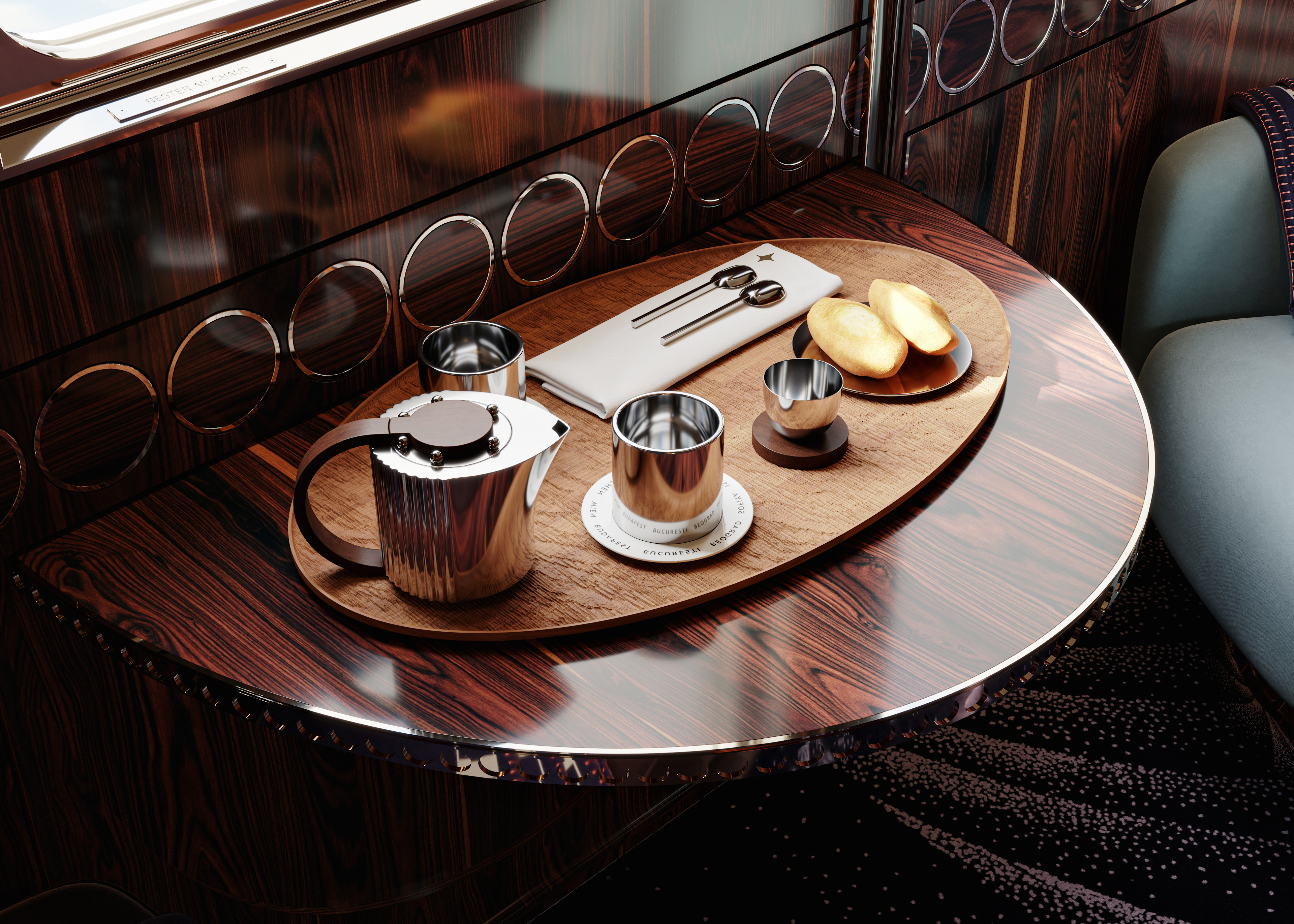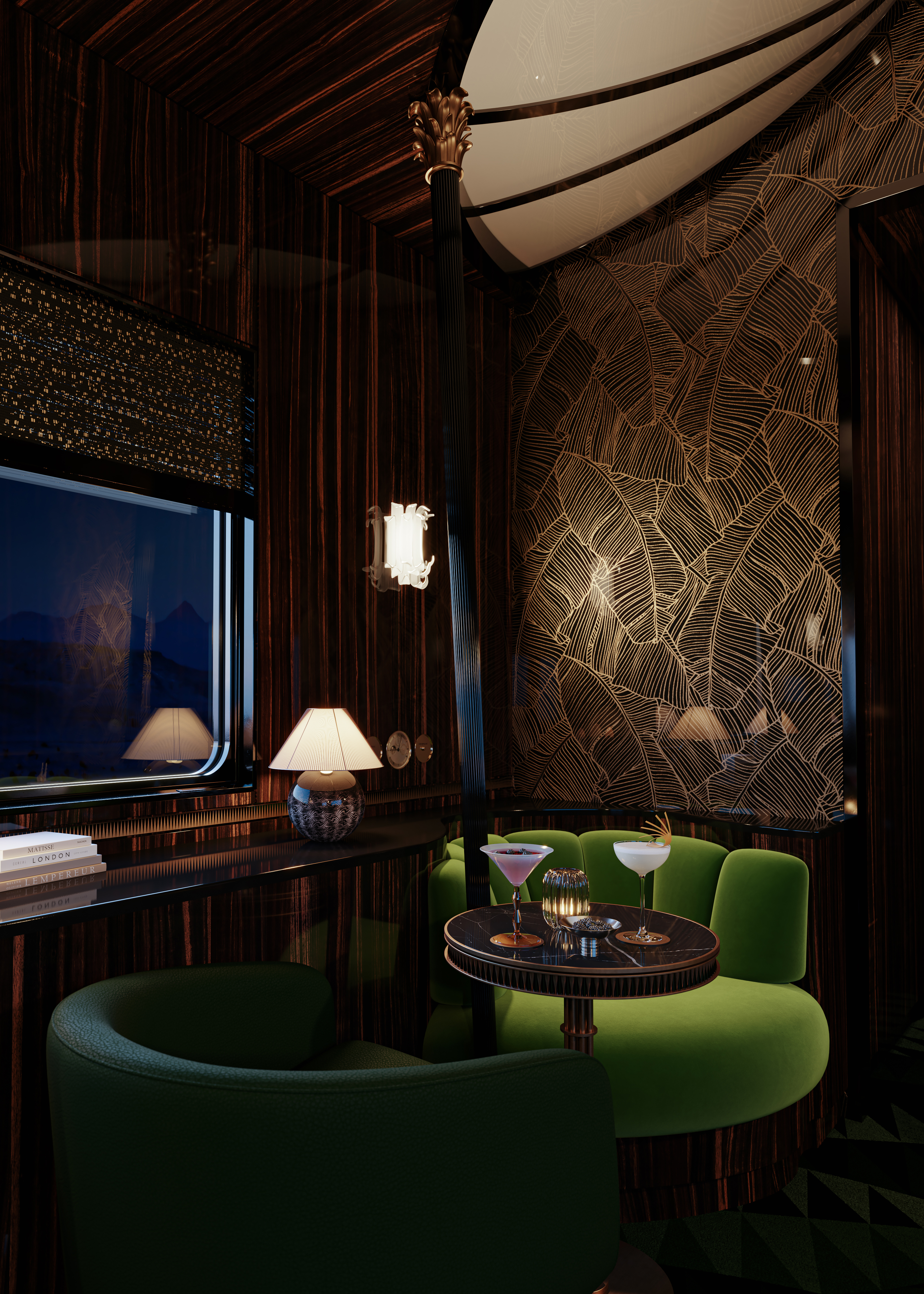 이 프로젝트의 독창성은 산업 디자인과 장식 미학의 융합에 있습니다. 그는 Orient Express가 단순한 장식이 아니라고 강조합니다. 그것은 기술과 산업 구성 요소를 모두 사용하여 무언가를 구축하는 것과 관련이 있습니다. 기차와 보트의 움직임은 디자인에 뚜렷한 문제를 일으며, 이를 해결하려면 세부 사항에 대한 정확한 주의와 영리한 설계 솔루션이 필요합니다.