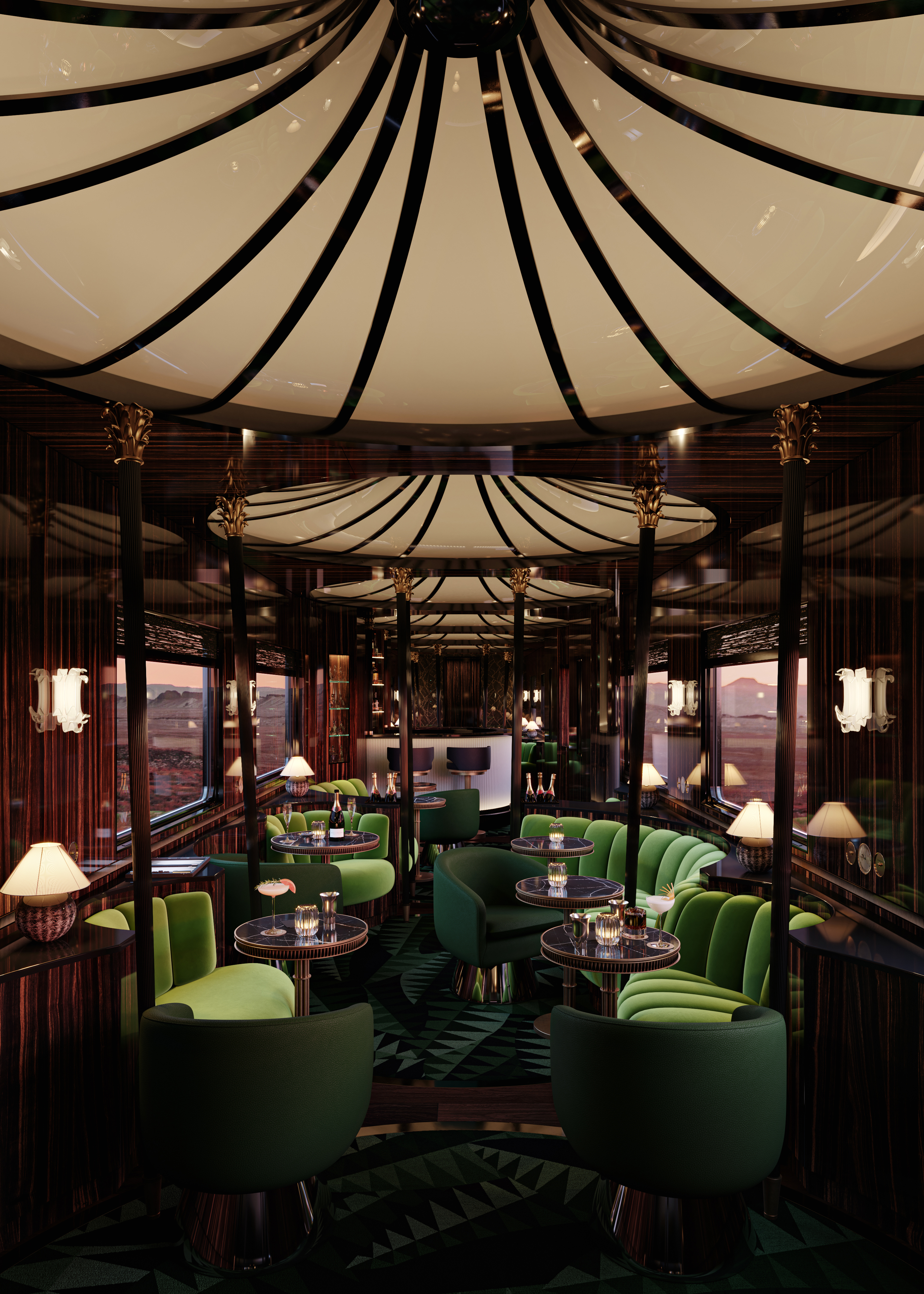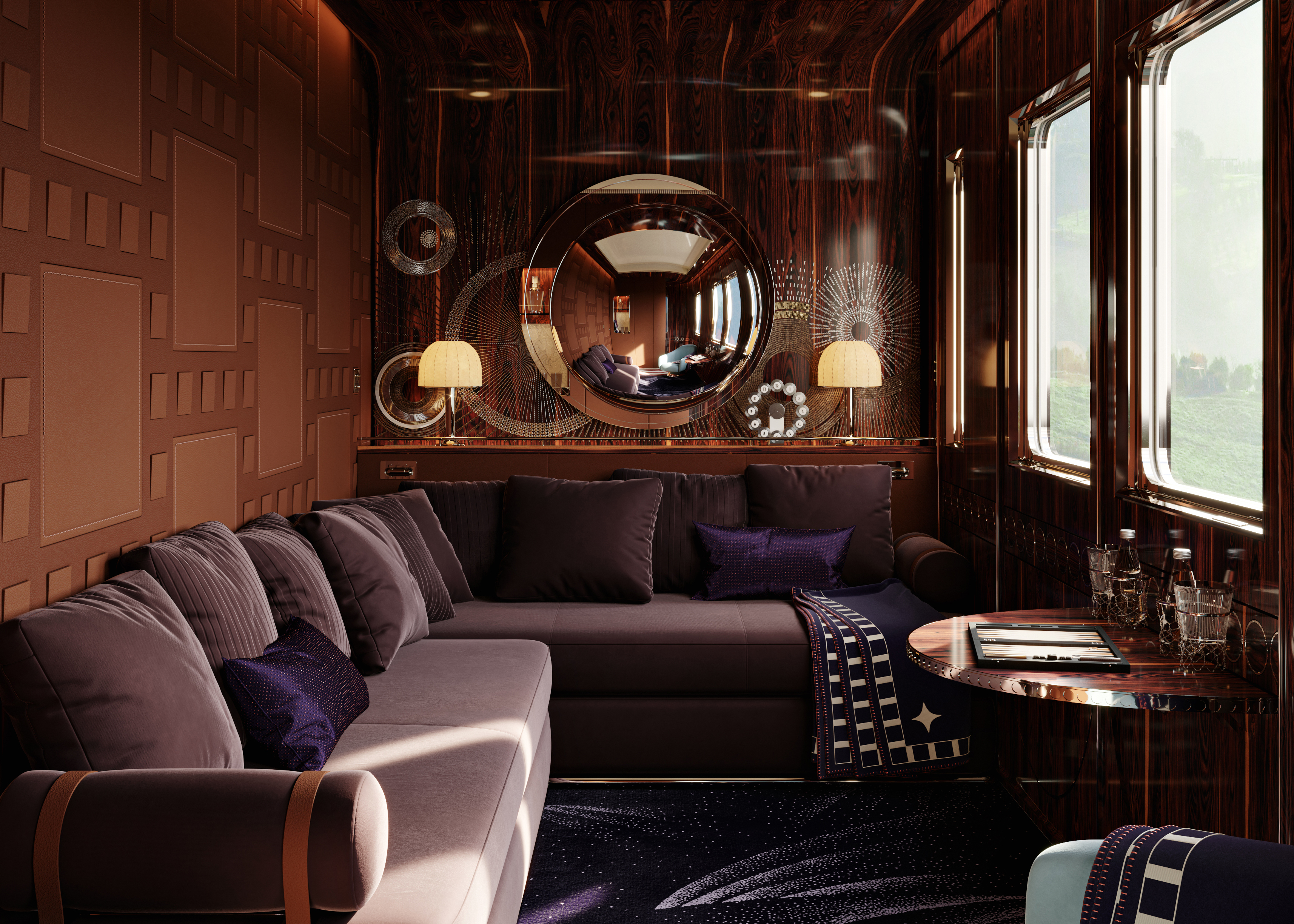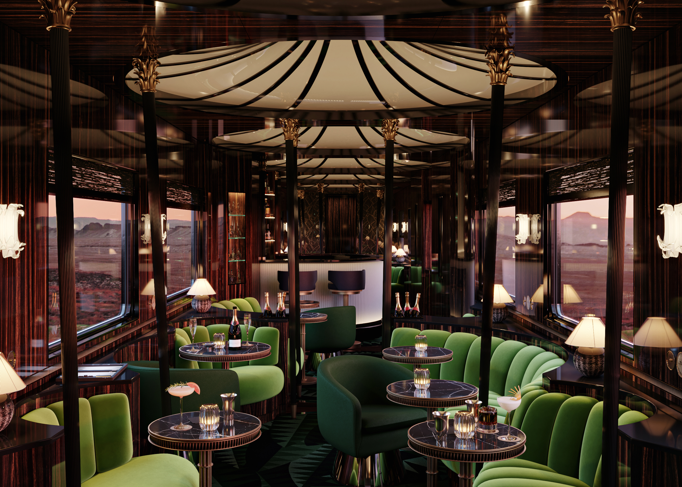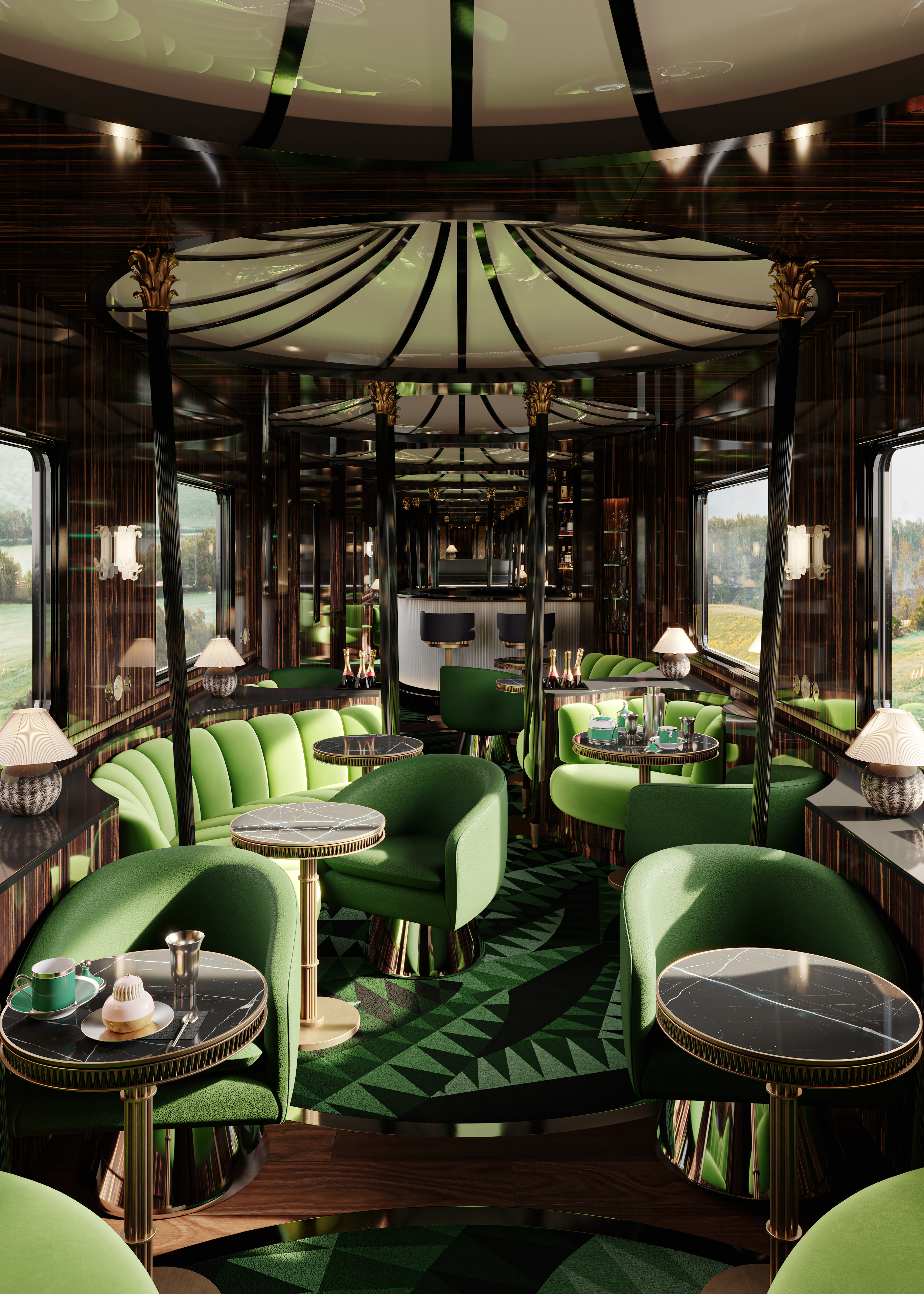새로운 오리엔트 익스프레스의 설계자 Maxime d'Angeac. 프랑스 건축가 Maxime d'Angeac는 Hilton McConnico와 함께, Daum과 Hermès의 무대 장치를 제작하면서 커리어를 시작해, 뉴욕에서 열린 콜베르위원회(Colbert Committee)의 연례 파티와 마누엘 카노바스(Manuel Canovas)의 행사를 위한 무대 장치 제작을 하면서 알려지기 시작했습니다. 그는 이탈리아 르네상스, 팔라디안 건축에 대한 열정과 완벽한 볼륨, 그리고 궁전의 화려함에 대한 집착을 지닌 건축가로 프랑스에서 돌로 된 독특한 성과 같은 럭셔리 개인주거 공간을 만들어왔습니다.