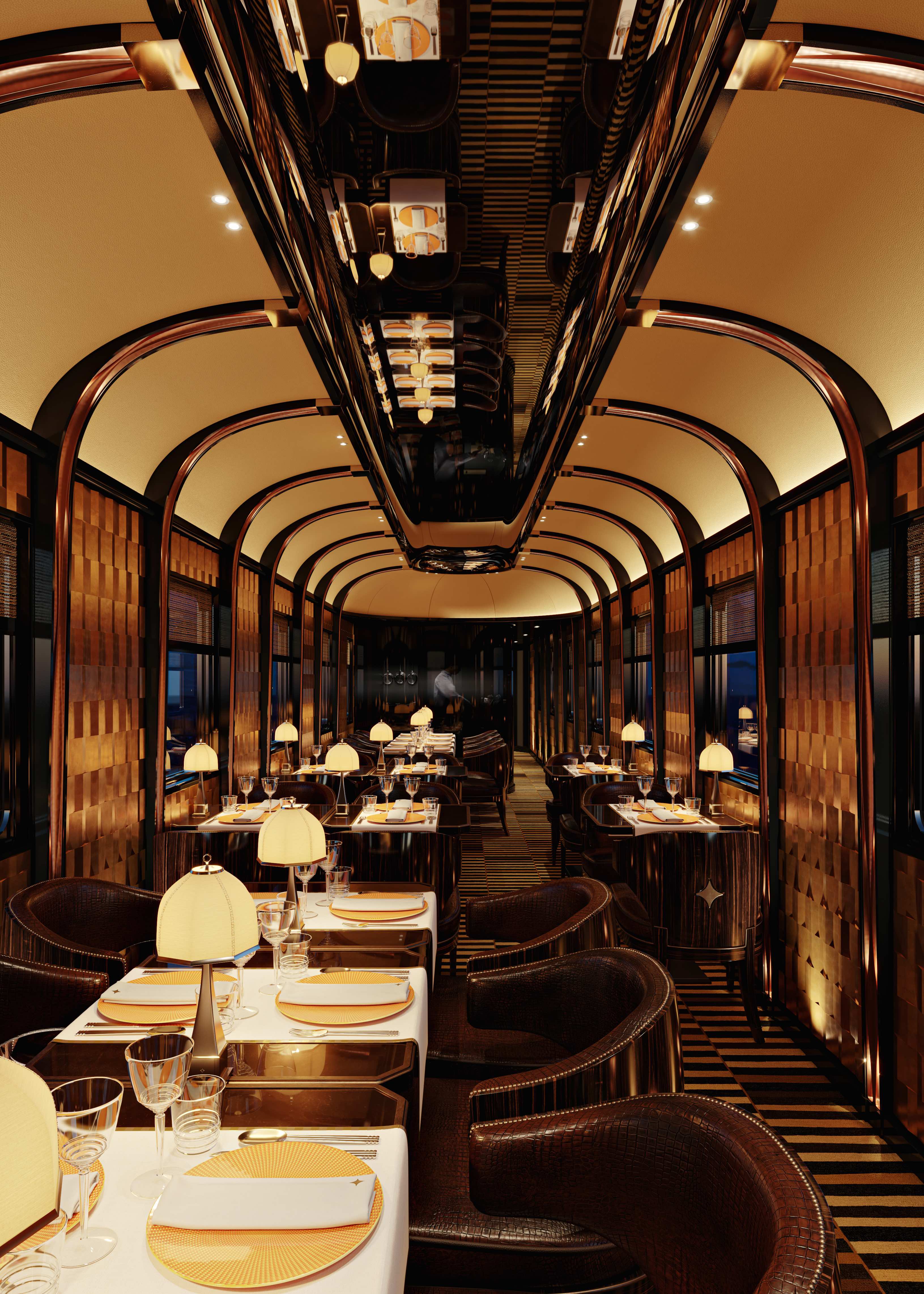 Maxime d'Angeac은 Orient Express 프로젝트가 단순한 장식을 넘어선다고 설명합니다. 깊은 개념화, 역사, 기억 및 기술에 관한 것으로, 건축가로서 그는 고립된 요소가 아닌 전체적인 앙상블에 초점을 맞춰 전체론적 관점에서 프로젝트에 접근했습니다. 이 접근 방식은 장식에 비해 더 깊은 이해와 기술을 필요로 하는 건축 디자인의 복잡성을 반영합니다.