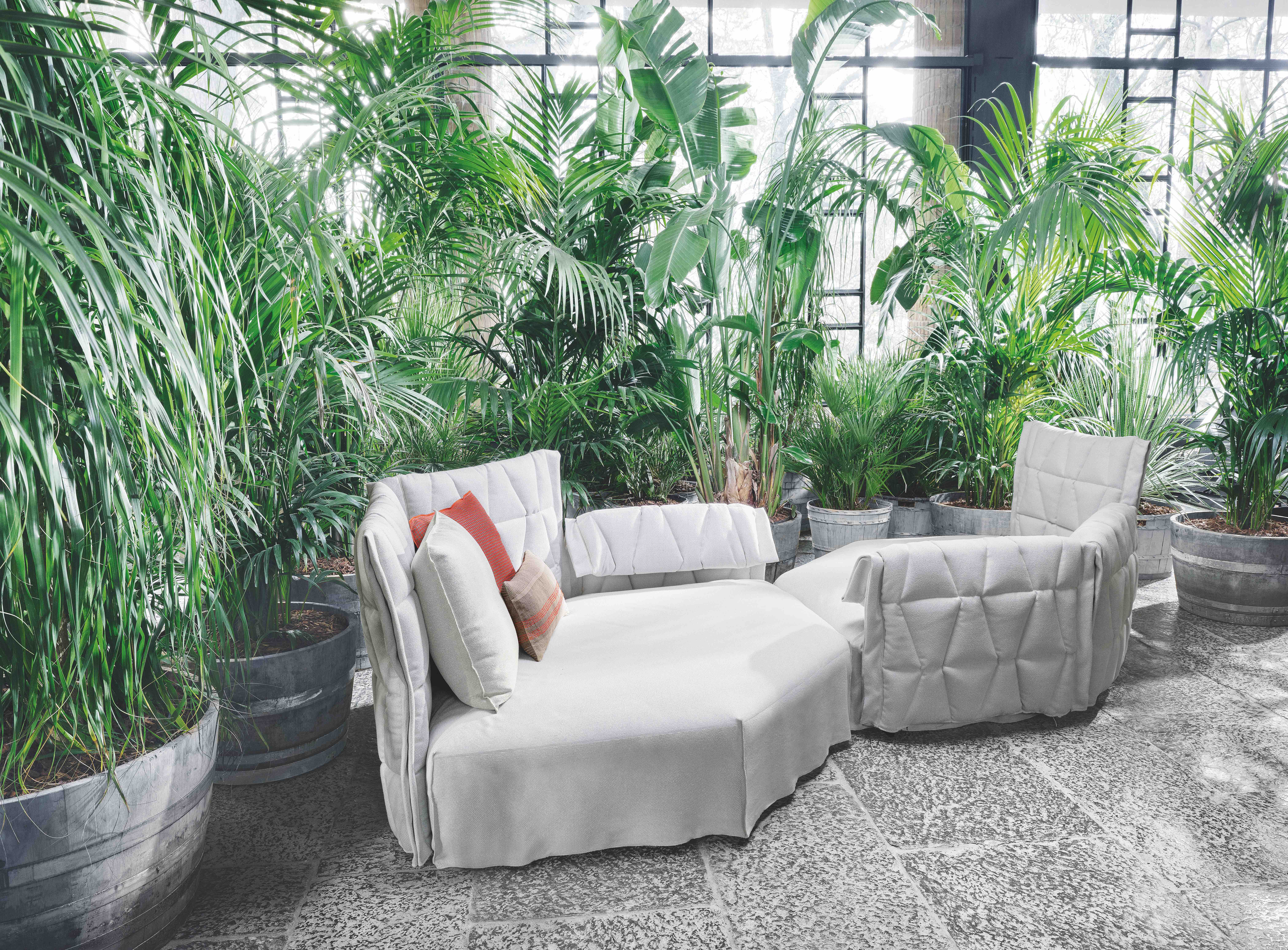 가브리엘(Gabriele)과 오스카 부라티(Oscar Buratti)가 디자인한 컬렉션. [Flair] 모듈러 소파는 부드러운 곡선과 아름다운 디자인은 캐주얼한 공간을 연출해줍니다. 자유롭게 조합할 수 있는 커다란 퍼프는 원하는 공간에 원하는 형태로 충분히 구성 가능하도록 만들어줍니다. Gervasoni가 첫번째로 선보이는 모듈러형 야외 소파로 각각의 시트는 개별적으로 뒤집을 수 있으며, 오버록 스티칭 디테일이 있는 퀼트 아웃도어용 천으로 업홀스터리되어 있습니다. 실외용으로 처리된 메탈 프레임과 폴리우레탄 폼의 쿠션, 미끄럼 방지 통기성 바닥으로 구성되어 있습니다.