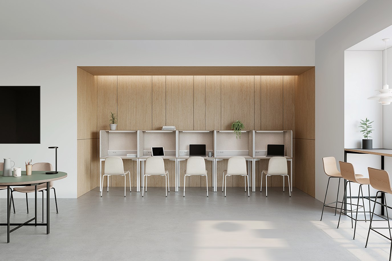 데스크 상단에 LED 조명이 달린 조명형은 조명 밝기와 색온도를 각각 3단계로 조절 가능해 최적의 업무∙학습 환경을 조성한다. 이에 더해 공간 내부를 펠트로 마감한 조명∙펠트형은 따뜻하고 편안한 공간을 연출하면서도 메모, 계획표 등을 자석으로 부착할 수 있다.