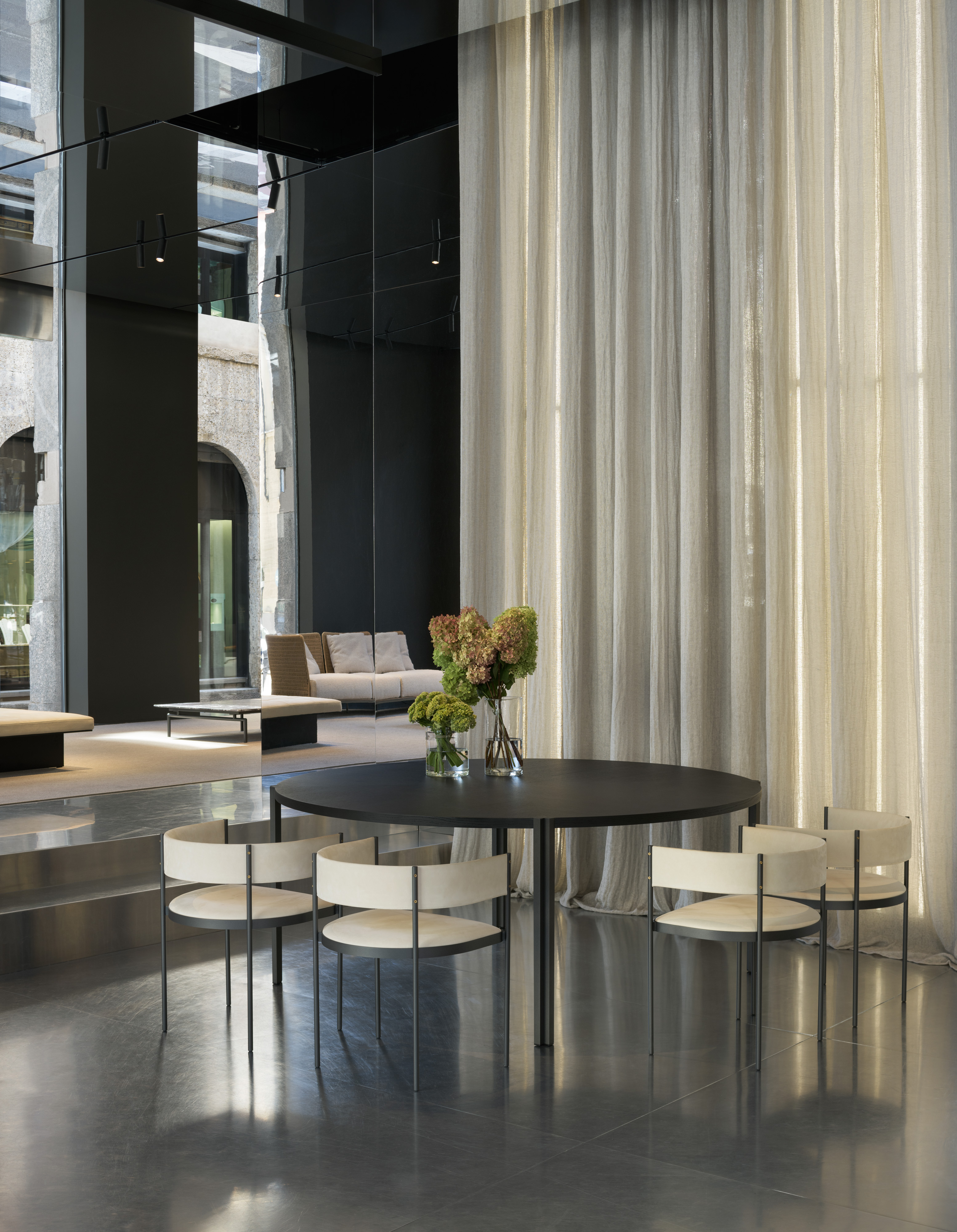 리빙 디바니 갤러리(Living Divani Gallery)는 집과 같은 느낌을 자아내는 환경에서 2024 노벨티(Novelties)를 맞이하는 포근하고 섬세한 분위기를 선보입니다. 부드럽고 세련된 뉘앙스의 환경은 마감재와 소재의 우아한 조합으로 대화하는 새로운 제안의 디자인과 독창성을 더욱 돋보이게 합니다. 2022년 데이비드 로페즈 퀸코스가 디자인한 그라프트 테이블은 이제 다리가 상판을 연결하는 기하학적 디테일을 포기하지 않는 세그먼트 인레이가 특징인 새로운 라운드 에디션으로 방문객을 맞이합니다. 같은 디자이너가 디자인한 시대 의자와 함께 선보입니다.