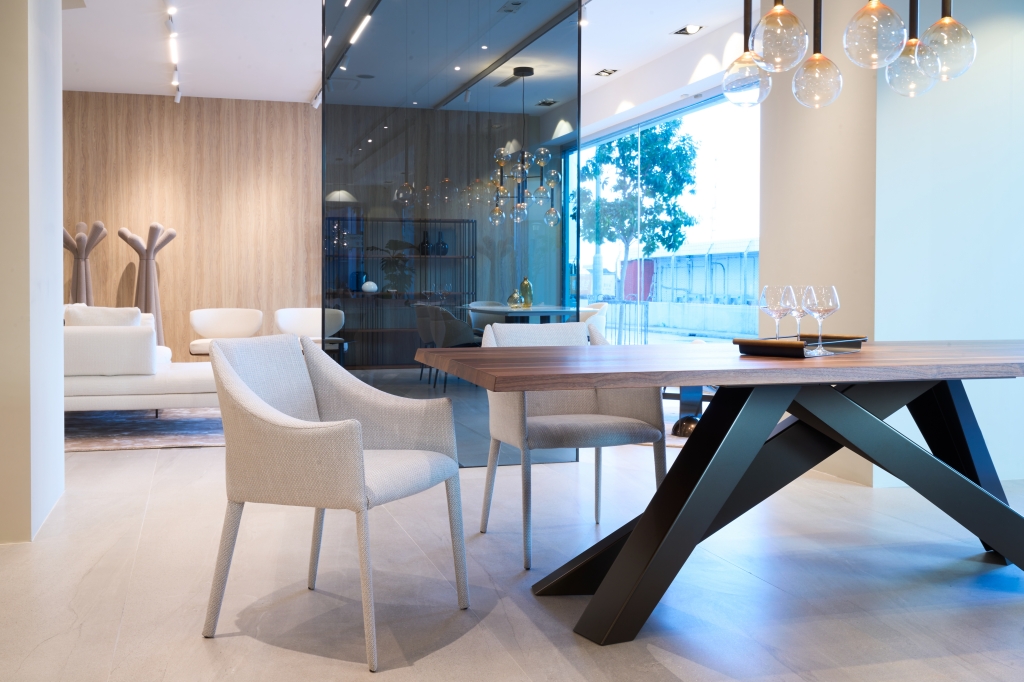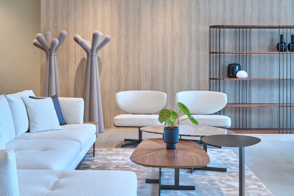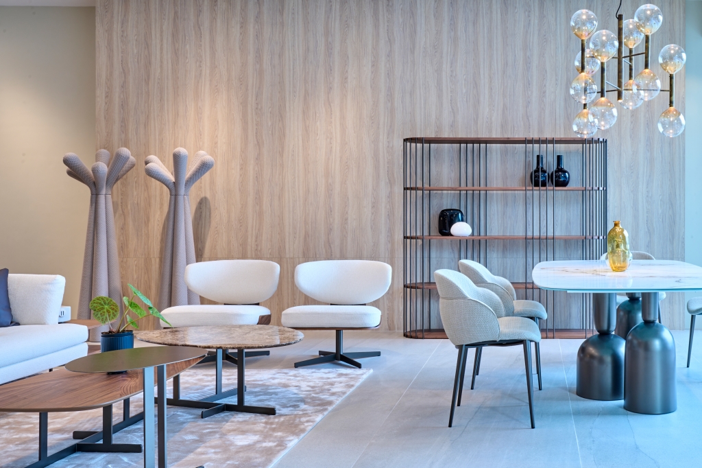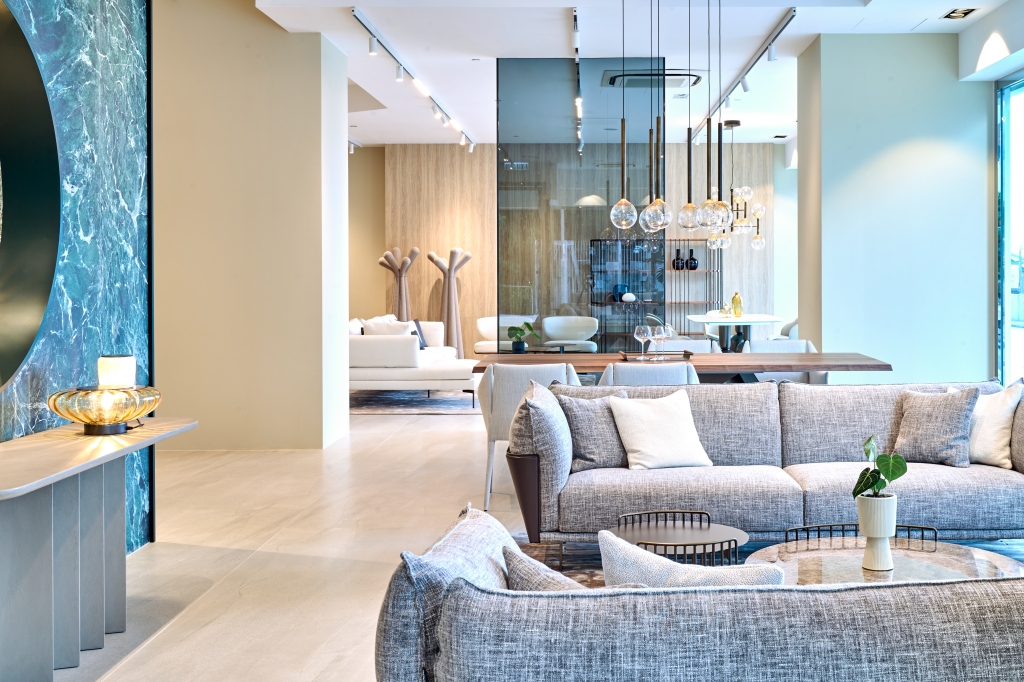 350평방미터 규모의 홍콩 매장은 이탈리아 디자인의 순수한 정신을 보여주는 조화로운 공간으로, 알랭 질(Alain Gilles)의 빅(Big) 테이블과 마우로 리파리니(Mauro Lipparini)가 디자인한 커프(Cuff) 침대와 같은 상징적인 제품과 세르지오 비세고(Sergio Bicego)의 알리안테(Aliante) 소파, 마르코니와 자파(Marconato and Zappa)의 피봇 ST(Pivot ST) 테이블과 같은 차세대 제품이 조화를 이루고 있습니다.