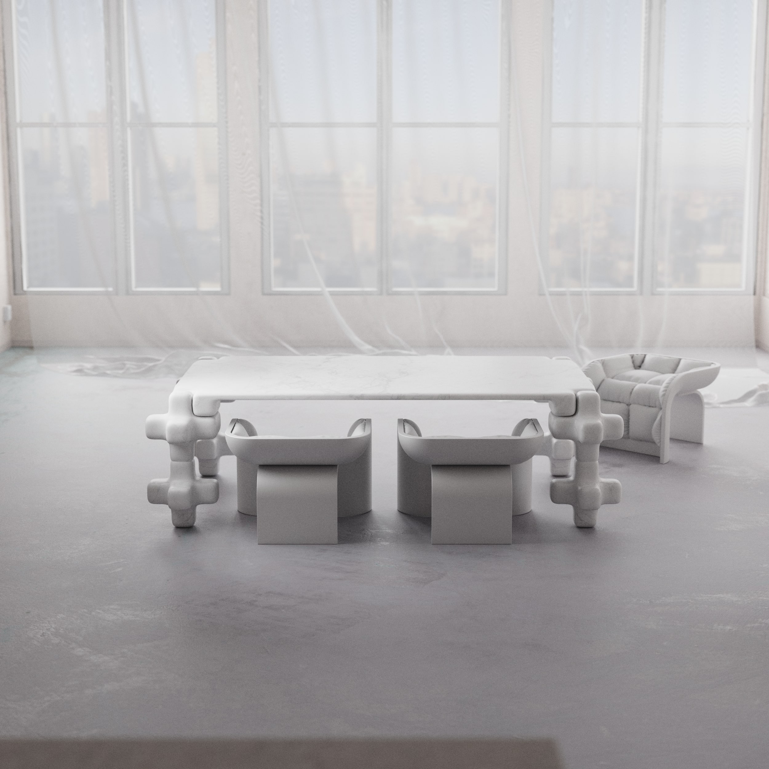 : AEON PROX _ 형태가 감성을 따르는 우아함과 유동성을 구현하는 조각적인 대리석 가구입니다.
