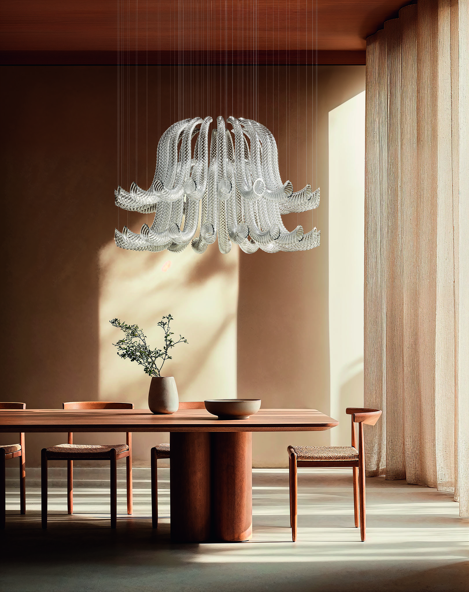 Barovier & Toso는 이번 컬렉션을 통해 “장식”을 넘어 “경험”을 창조하는 여정을 이어갑니다. 빛과 유리, 그리고 무한한 상상력이 만들어낸 이 독창적인 세계는, 건축과 예술, 그리고 인간의 감각이 만나는 경계 위에서 가장 빛나고 있습니다.