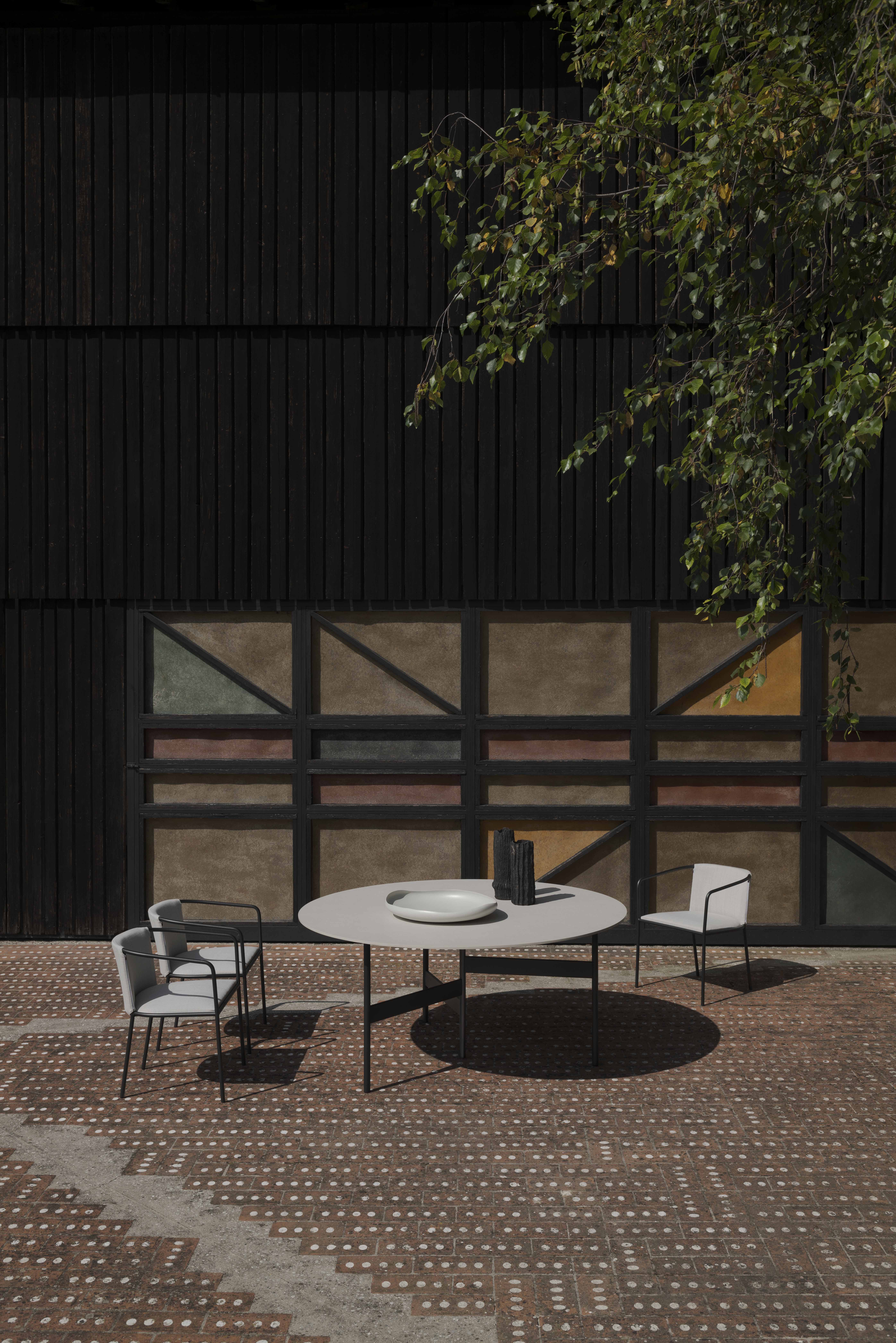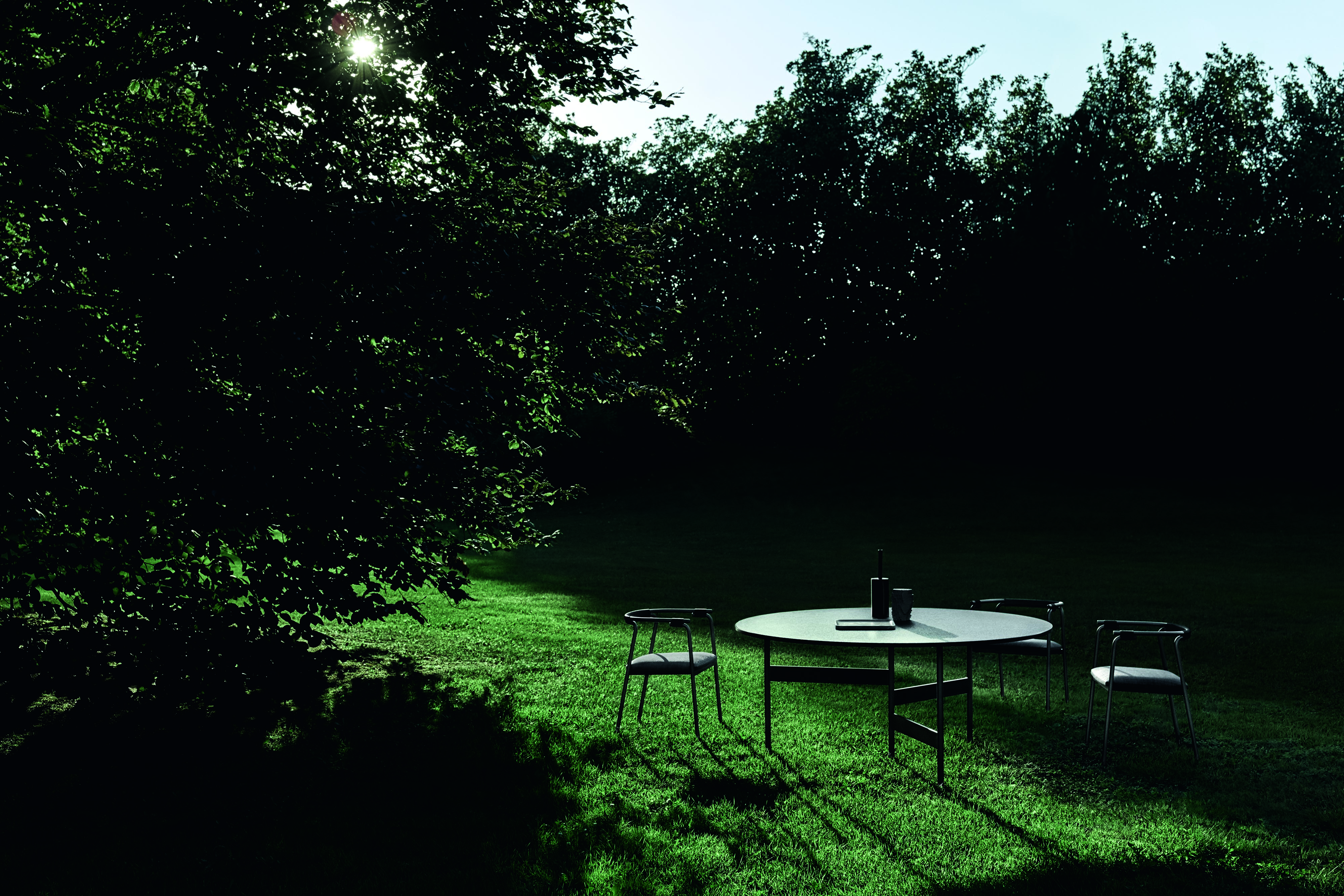 마시모 마리아니(Massimo Mariani)의 ‘Notes’ 테이블과 피에로 리소니의 ‘Maja D’ 체어는 가볍고 섬세한 라인으로 구성된 조합입니다. 아침 식사, 그늘 아래에서의 독서, 노을 속 담소까지, 하루 속 작은 휴식과 소통의 순간을 위한 공간을 자연스럽게 만들어냅니다.